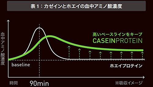 カゼインプロテインは他と違い、時間をかけてゆっくりと吸収されるので即効性はありません。しかし時間をかけて吸収する性質が、寝ている間や休日の栄養補給、ダイエットに効果を発揮します。
