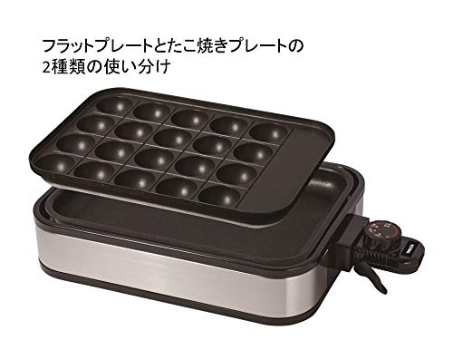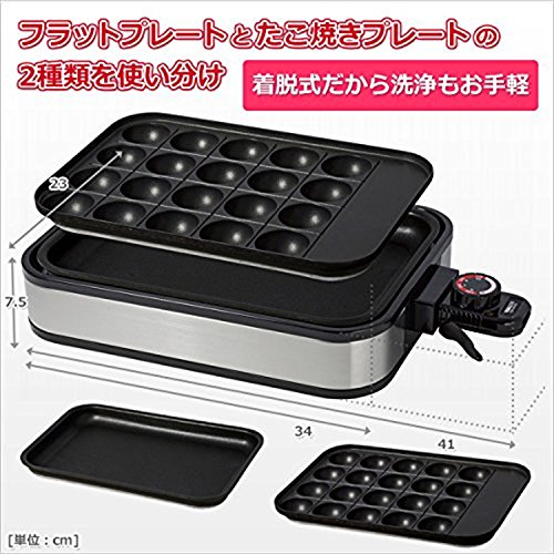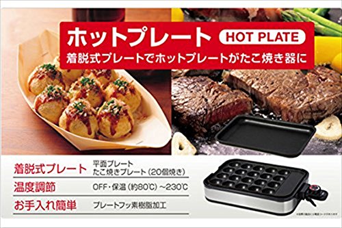 山善 (YAMAZEN) 着脱式ホットプレート(たこ焼きプレート&平面プレート付) YHA-W100(S)