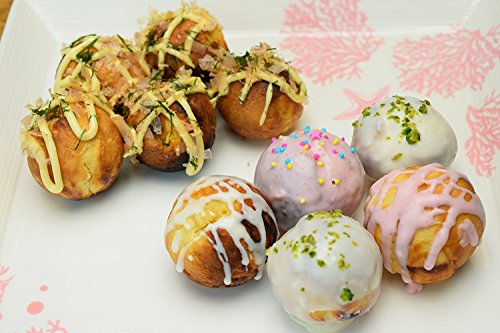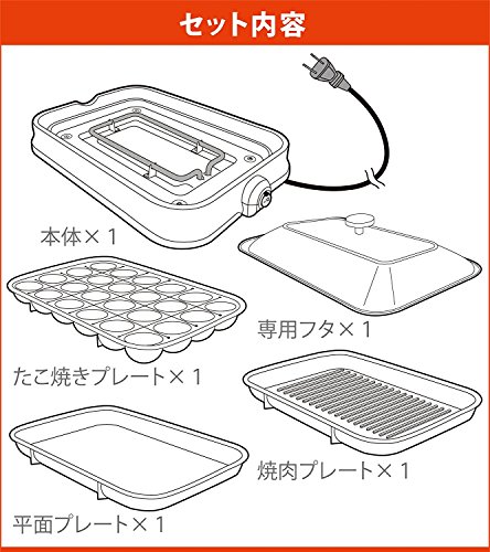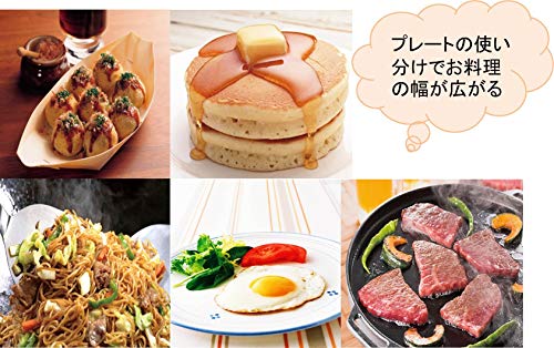フラット・たこ焼きの2種類のプレートが付いており、白色のプレートですのでお料理を明るく、華やかに仕上げることができます。たこ焼きプレートでスイーツを作るなど、パーティや女子会にも便利。