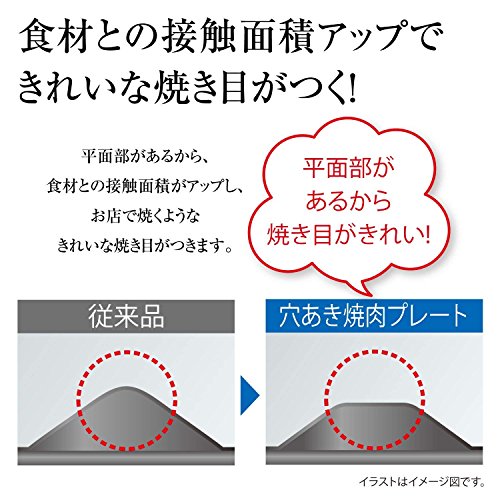 真ん中が高く、穴がたくさん空いたプレートは油を落としやすいので、煙の発生を抑えると共にヘルシーに焼き上げることが可能です。